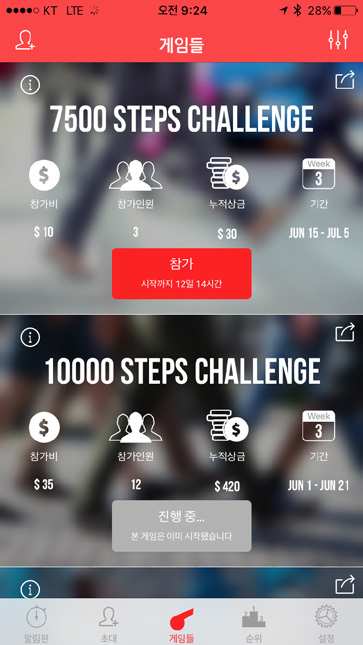 돈 놓고 돈 먹기인 이 게임은 그 어떤 운동 앱보다 확실한 동기 부여의 효과가 있다. 운동 결심이 늘 작심삼일로 끝나는 분들에게 추천한다. 아쉽게도 아직 아이폰에서만 이용할 수 있고, 안드로이드 앱은 현재 개발 중이다.