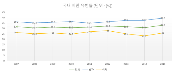 나아가 비만 문제는 더 이상 남의 일이 아닙니다. 우리나라도 인구의 3분의 1이 비만(2015년 기준)이라는 사실, 놀랍지 않으신가요?